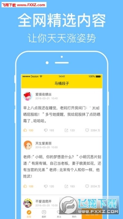 马桶段子app是一款高能的手机搞笑应用,精选全网搞笑段子,各种幽默短文、内涵图片、趣味视频等应有尽有!让你笑得停不下来,简直就是蹲坑必备神器,小伙伴们快来下载吧!