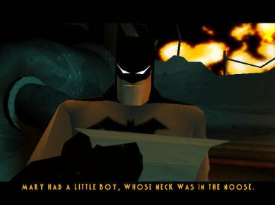 蝙蝠侠:复仇是2002年育碧发行的一款根据同名漫画该改编的动作冒险游戏,该游戏的故事由篇写电视动画的人员负责,所以在故事上将可以保留原有的色彩,Ubi Soft在希望可以藉此唤起某些老观众的回忆的同时也在游戏的玩法上作了部分创新。玩家们可以发现,在游戏中不但需要四处奔跑、战斗以及解开谜题,有时还要花脑筋耍点小技巧才能顺利完成任务。而现在已知道蝙蝠女也会出现在游戏中,至于蝙蝠侠的另一位搭档罗宾会否在游戏中现身呢?只有等到完整版推出时才能知晓了。