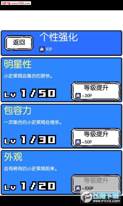 史莱姆之星是一款以养育史莱姆,目标成为魔王的左膀右臂打勇者的像素风育成游戏。史莱姆和勇者都有不同的属性,打败勇者除了要靠体型,最重要的还是属性!玩家的史莱姆属性可以在成长过程中进行改变,只要吸收不同属性的史莱姆就可以囖。吸收后史莱姆体型会变大,打倒勇者后还能得到魔王的赞赏,当然还可以获得称号和金钱啦!