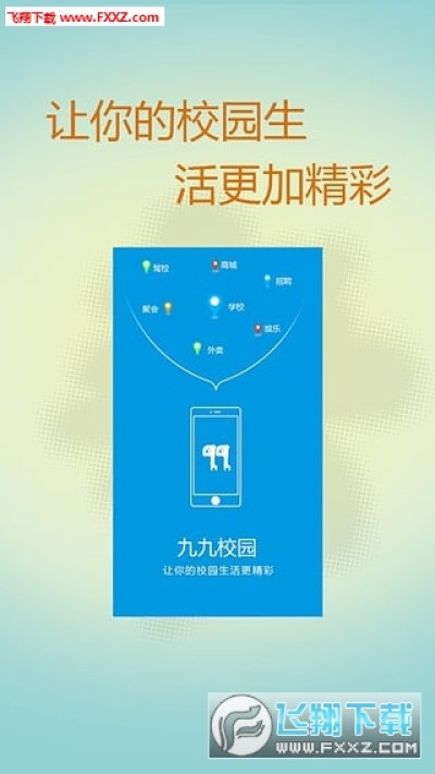 99校园是一款针对校园生活所开发的APP,在这里你能学校周边各种好玩的、好吃的,还能在学校里面结实更多的小伙伴,一起玩耍,加入好玩的社团,让你的大学生活更加丰富多彩。99校园,您的生活管家!