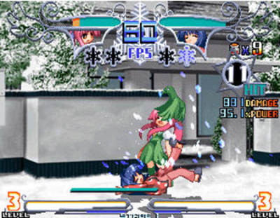 系统 efz的系统并没有很大创新,其实也没有什么必要去创新,格斗游戏的系统在各个大牌公司绞尽脑汁后已经到了一个峰顶,要做出飞跃,不是一朝一夕的事情,efz并没有选择冥思苦想去研发创新,而是在自己的创意中有机地加入了各个着名格斗游戏的系统优秀部分,efz在这个方面可以说做的非常的成功与出色。 es必杀技系统:经过储存sp值,并消耗一定的sp值来发动es必杀技,这种必杀技往往具有非常大的威力。 rf强化系统:efz中不光有着sp值,还有rf值,通过消耗rf值可以是原有的必杀技得到强化,发出比平时更大的威力,当然,也有部分招式是无法强化的。精确防御(rg)系统:这是普通防御的一种强化系统,可以有效减少防御的僵直时间,使得可以更加精彩快速地撕开对手的压制。强制取消(ic)系统:这是连招中的加强系统,通过消耗全部的rf值来强制取消招式僵直,然后就可以继续给予对手更大创伤的连续技。 combo修正值系统:由于修正值的存在,这样就让很多的combo的难度有所增加,同时也不会有着非常夸张的伤害,最主要的还是要让那更多精彩的连打上场。除了这些,还有很多更加细致的系统方面,如随着的生命值降低而防御上升根性伤害修正,还有一些隐藏的超级es必杀技等等。