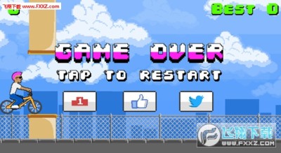 《小轮车冲刺官方最新版》游戏中玩家需要通过点击屏幕来控制自行车弹跳的时机,从而跃过各种各样的障碍物,游戏虽然操作简单,但是难度却不低,自行车的弹跳时机刚上手的时候难以把握需要反复练习。游戏的玩法操作虽然很简单,但是想要持续不断的闯关可就没那么容易了,因为你一旦撞上障碍物,就会死的很惨,是一个极度考验玩家敏捷反应能力的休闲游戏!