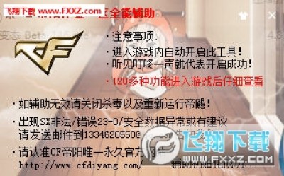 CF帝阳体验服一区辅助是由CF帝阳辅助官方为穿越火线体验服一区玩家制作的一款辅助工具,辅助功能强大,使用稳定安全,并且长期更新。
