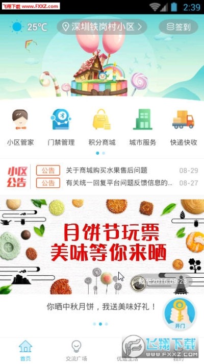 1、首页:智能门禁,用app取代传统的门禁卡,人行、车行、一键锁车功能;物业公告、物业缴费、在线报修投诉,访客通行更便捷;物业费一键缴纳,城市服务一点即享、家政服务随叫随到、车生活资讯活动一揽即收。