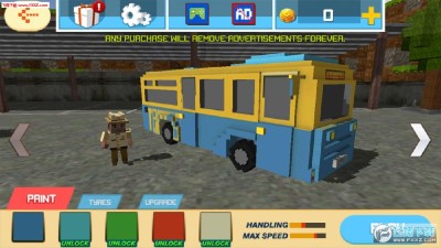 《我的世界》画面风格的虚拟巴士驾驶游戏,采用关卡制,每个大场景下有10个小关卡。控制车辆到指定公交车站停靠,搭载乘客到达终点车站。游戏里居然还有左右转向灯、警示灯、车大灯、喇叭等可以开启,也带有驾驶舱视角,码表还能动。。。游戏里包含多款车辆,通过金币解锁。金币很容易挣,基本过三、四关就能获得足够的钱来买新车。