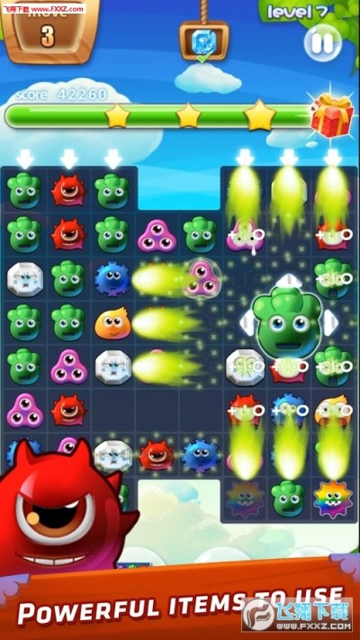 疯狂妖精 Pixie Frenzy 是一款对对碰消除游戏,效果并不算华丽,关卡最后的奖励时间倒是很爽。