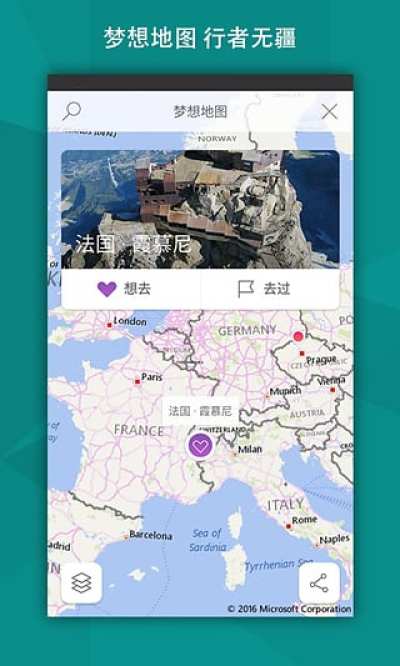 1.开启梦想地图,点亮你到过的每一个地方,搜集遍布世界的美景,绘制专属于你的梦想地图
