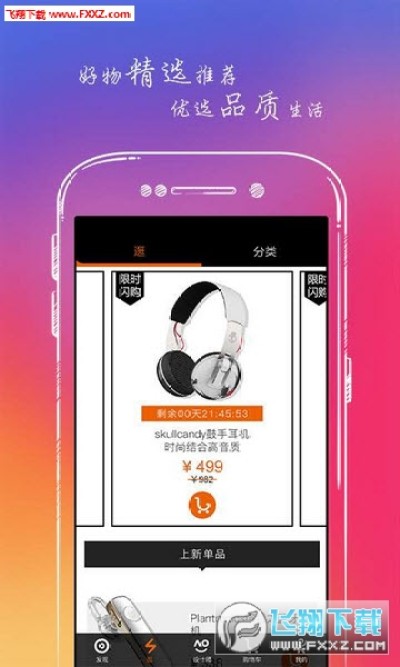 2.浏览【逛】板块,限时闪购、上新单品、品牌推荐、热销爆款、折扣专区,让你每天“逛”不完。