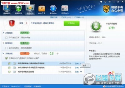 瑞星杀毒软件2011基于瑞星“智能云安全”系统设计,借助瑞星全新研发的虚拟化引擎,能够对木马、后门、蠕虫等恶意程序进行极速智能查杀,瑞星杀毒软件免费下载 2011官网在查杀速度提升3倍的基础上,保证极高的病毒查杀率。同时,病毒查杀资源下降80%,保证游戏状态下0打扰