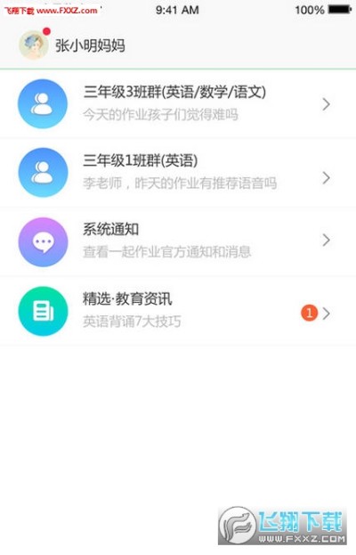 2、 使用家长通APP接收老师的各种通知信息,查看宝贝的作业完成情况,与同学及家长们进行互动;