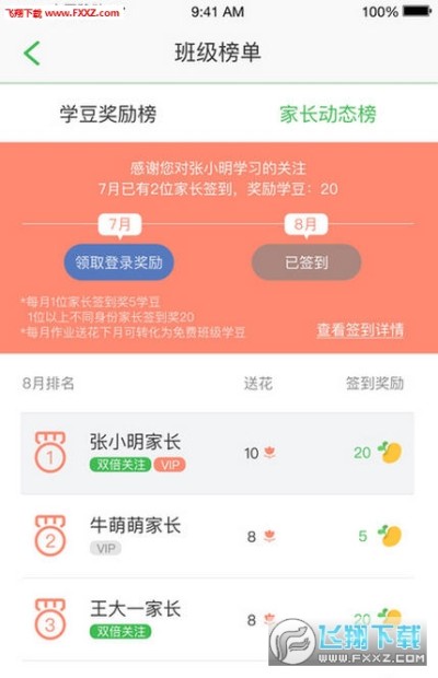8、 班级榜单实时查看:了解班级同学和家长的最新动态,超实用的家长助理;