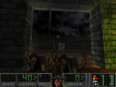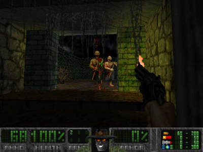 游戏采用Doom源码,古旧风格的3维视角模式将我们带回曾经的游戏感觉之中,朦胧模糊的画面更衬出阴森恐怖的气氛,丑恶的僵尸怪物和血腥的战斗充满了刺激。