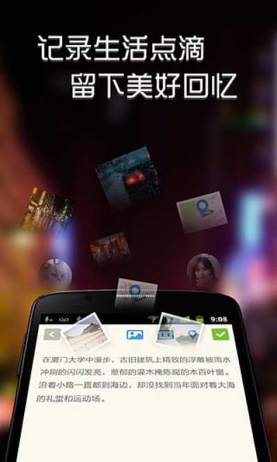 记记手机日记本是四胖小组独立精心打造,于11年12月10日首次发布,是当今潮人必备的一款安卓手机应用。让您随时留住岁月长河的每一瞬间。