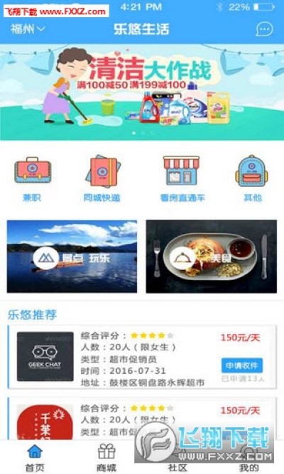 乐悠生活app是一个多功能的生活服务平台,其集租房、购物和找兼职等众多特色功能于一身,满足大家的不同生活需求,如果你想找兼职的话,这里有很多待遇丰厚的工作等你挑选,如果你想购物只需在线下单便会有专人为你送货上门,十分的方便,欢迎有需要的朋友来这里免费下载使用!