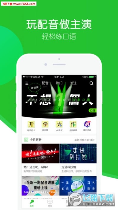 2.【全新方式】摆脱枯燥传统的学习方式,通过配音学习英语、提升口语听力。配音打分、生词翻译、作品分享,随时随地玩转配音!