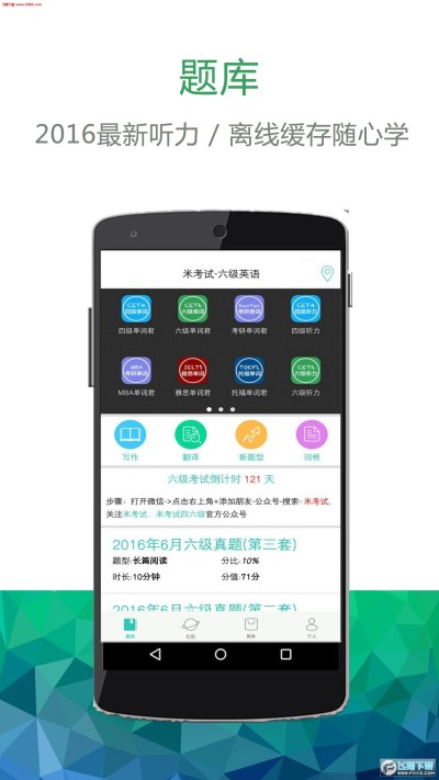 本软件包括2006年6月到2016年06月的所有六级阅读真题,你可以随时随地的练习六级阅读,确保你六级在最短的时间取得最高的成绩。