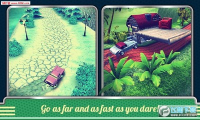 游戏的玩法与传统的竞速游戏还是有一定不同的,游戏中玩家所要做的并不是以最快的速度到达终点,而是需要尽可能的行驶更长的距离。在画面的上方会显示当前汽车油箱里的剩余油量,当汽车开始发动之后就开始不断的消耗汽油,而在赛道上每经过一段距离就设置有一个加油站,玩家驾驶汽车经过之后就将会自动补充油量,不过补充的油量是有限的,当汽车没油之后就会停止下来,游戏也将随之结束。在游戏中玩家需要完成的里程数也是不一样的,每完成一个任务玩家都将获得一个奖杯,地图以及新车的解锁都是需要奖杯数积累到一定数量的。利用获得的金币玩家可以升级自己的座驾,升级之后其属性会得到进一步的提升。