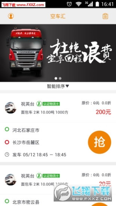约车:是免费对用户开放的,不需要重新再获取账号,货主可通过“约车”功能,填写发货地、收货地、用车时间、货物体积重量等信息,直接下订单。如有司机竞标成功此订单,则交易产生,货主需要支付司机相应的费用。