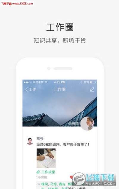 【工作圈】企业内分享观点、知识,掌握职场干货;更有点赞、评论,打造激情团队。