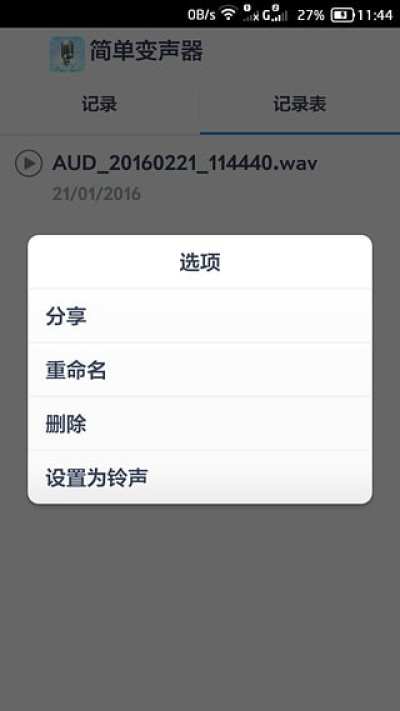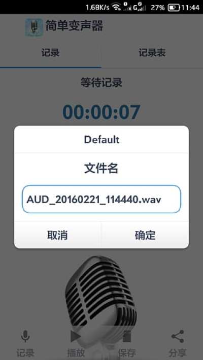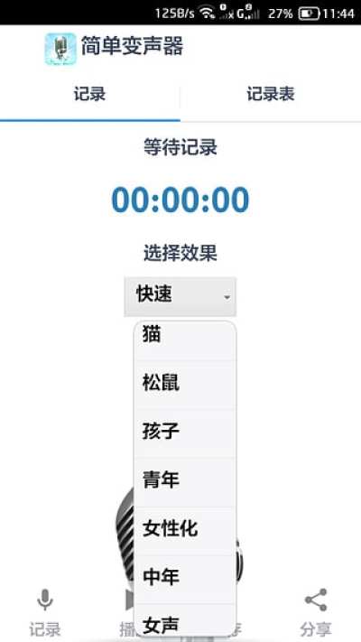 能让你的声音立刻改变,并可以发送给朋友。一键开始录音,选择一个特效,立刻可以听到变声后的效果。