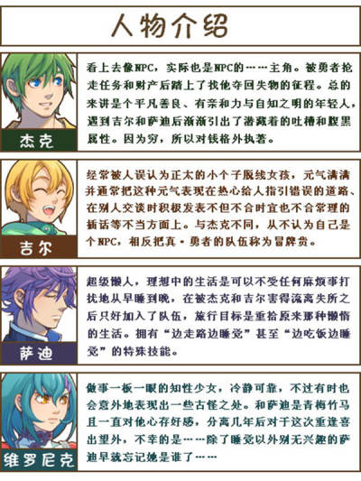 对不起 我是个NPC 对不起 我是个NPC 这个名字看起来是不是很古怪呢,其实这个游戏被称为国产创意RPG游戏.在游戏里试图让玩家换一个角度以NPC的身份体验一下熟悉的RPG流程,据我所知当勇者是个比较明智的选择也很划算。有时候要莫名其妙的被召唤过去和怪物作战,但是为了胜利之后的喜悦和称号,都豁出去了。艰辛的旅程就这样开始了...