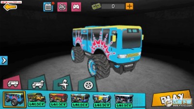 这是一款横版3D大脚车特技越野游戏,画面出色 ,物理效果也非常棒,体验很好。玩家控制各式各样的大脚车辆,在不同的场景下挑战各种危险的障碍。多款车辆可以解锁,而且每款车都能进行升级。有点像《越野传奇》的风格,不错。