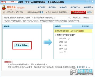 第一步:登录克隆到的QQ,即接收被克隆内容的QQ,此号码必须先开通超级会员服务。
