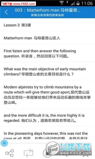 新概念英语第四册是一本英语教材,现在也放入了手机中,随时随地可以打开看一看,携带方便,内容跟课本上面的一样,非常全面,包含了整本书上的听力、单词、课后习题等想学正宗美式发音?想学到书本上学不到的知识?这里应有尽有,还有各个学校师生学习英语经验等等,欢迎下载。