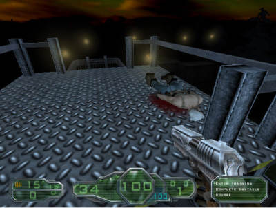 淤血(又称末日世界)是2002年DreamCatcher发行的一款第一人称射击游戏,游戏采用了虚幻引擎,第一/第三人称视觉,十六种武器,支持各种多人游戏,画面精美,对硬件要求不高,在我的机子上(赛扬566超850,小影霸速龙3000+,128mb内存,800*600 32位色,fass*4)就可获得流畅的速度。此游戏采用单线索进程,不象其它fps类游戏,没有左跑右转上窜下跳找开关或机关之类的情节,如果门是关着的则此路不通,得考虑其它路径,场景虽复杂,多转转还是很容易找到出路的。
