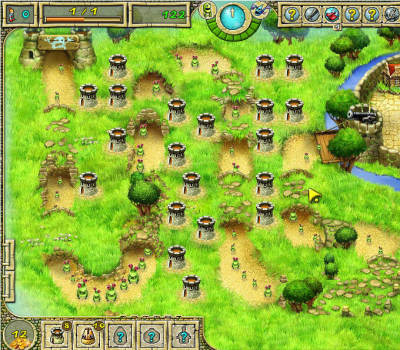 《土豆怪兽-Monster Mash》游戏的规则其实和著名的RPG魔兽游戏的塔式防守地图类似,只用鼠标就可以完成全部的操作。初始你有金币不是很多,可以购买一到几个个最低级的攻击塔,随着攻击,金币会越赚越多,因为搭建各类碉堡是要消耗不同数量的金币的,跟所有的塔防游戏一样,怪物都是按照一定线路前进的,我们的任务就是找到合适的地点来放置防御塔,通过防御塔来消灭怪物,注意不同的防御它的功能和发射炮弹是不一样的,通过攻击敌人获得金钱,从而购买更多的防御塔!地图的重点就是防御塔放置的地点非常重要,要尽可能的把打击面扩大,使得可以消灭更多的怪物!