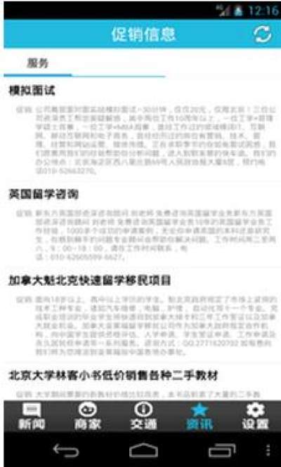 面向中国高校在校大学生、老师以及大学周边人群,提供包括学校新闻、商家信息、交通路线、招聘信息、应用介绍特价信息等版块。通过该应用,能方便的了解到学校的新闻,找到周边的商家,出行时也能快捷的找到出行路线,找到需要的一些特价信息。本产品旨在成为大学生朋友的贴心好帮手。