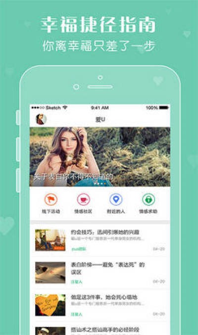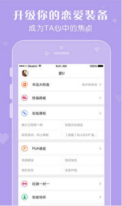 爱u app是一款手机情感类软件,在这款软件中你可以学到很多东西,例如恋爱的技巧,怎么追女生啊!怎么提升自己的魅力,在爱U都有,爱U还会举办线下交友活动,想交朋友的快来啊!