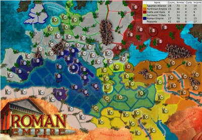 远古帝国和《美国战史》同为Sillysoft Games所开发策略战争游戏,采用了类似玩法的规则。在本作中设计了更多的对手国家参战提高游戏难度,并加入了奖励和道具卡片等元素丰富游戏内容。游戏中包括58个远古国家供你支配,12场战役将被逐渐解锁。选择士兵、指挥官、王者等4种游戏难度,运用巧妙的策略获得战役胜利,沉浸于 Ancient Empires Lux将带给你持续的乐趣。游戏十分简单的,没有说英文就很困难,全鼠标操作。而且是分三个等级的:士兵,指挥官,王者。但是千万不要小看这个游戏,因为你在士兵的那个阶段都可能打不过去,这是实话,你的每一步的兵力分布以及进退都要思考好,不然就是你整个帝国的覆灭,还有因为国家之间也有对抗,要考虑多线作战问题,当然,占得土地多,资源也多,征兵也快。这个游戏是值得珍藏的。