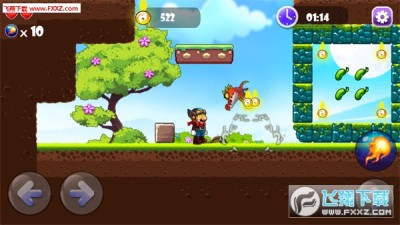 游戏是一款高仿的马里奥游戏,所以游戏的地图,怪物都发生了很大的不同,当然还是蹦蹦跳跳的大叔,不过火球需要吃了豆子才能发射而且只有一发。游戏画面和游戏性都不错,就是金币难捡了点。