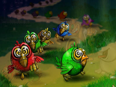 雏鸟之乡很有趣的小游戏,小鸟们中了坏蛋们的圈套,被某种声音蛊惑,排队冲向笼子,你需要做的是用“祖玛式消除”的办法阻止它们进入笼子,揭穿坏蛋们的阴谋