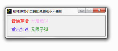 各位枪林弹雨的玩家看过来咯,今天小编给大家带来一个强大好用的枪林弹雨小男辅助,枪林弹雨小男辅助拥有玩家都想要的穿墙功能,透视功能更,还有无限子弹,让你在游戏中轻松掌握敌人位置,拿下游戏的胜利。