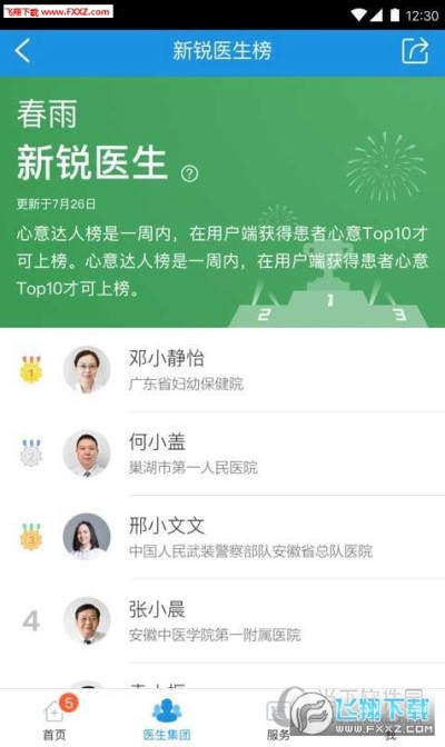 2、全新的春雨排行榜上线,不仅可以查看上榜医生,还可以查看自己在科室排行中的位置