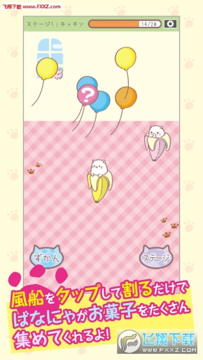 2、割破舞台上出现的气球,收集更多点心食物;