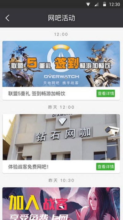 这款战客联盟app可以帮助你搜索到附近的所有网咖信息,以及所剩余的空闲座位,你只需要按照上面的要求完成分享即可获取免费上网的资格,另外你还可以参加这些网咖举办的各种活动哟,感兴趣的朋友快加入进来吧,免费上网的机会不容错过哟!