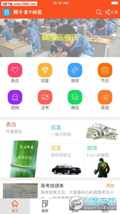 你只需要动动你的手指,输入你的姓名,则可以轻松一键生成结婚证、豪车驾驶证、大楼表白等图片,然后分享到朋友圈或者QQ空间,装X无极限。