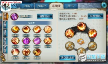 每个玩家可以学习多个技能,但是主界面的每个技能栏只有4个格子,通过【连续技】系统来实现玩家用四个技能栏的位置释放超过4个技能,每个连续技有六个格子,可以将人物技能和法宝技能(XP技不能放入其中)放入其中,格子的数字对应释放的顺序,同一个技能可以多次放入其中。技能加点