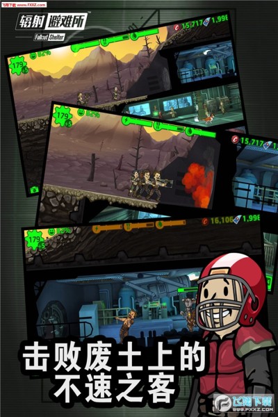 派遣您的居民到地面上,去探索被炸毁后的地面废墟,让他们在“废土”中冒险,寻找可用的幸存物,或是直面无言的死亡;找到新的装甲和武器,增长经验,然后赚取“瓶盖”。但记住,不要让他们死掉!