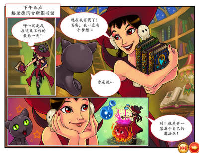 小女巫完成了在图书馆的最后一天工作,小女巫终于有足够的金钱买下魔法店,虽然只有一间简陋的小房子,唯一的魔法锅和寥寥无几的客人,但在你的经营下一切都会变的神奇!随着时间的推移,收入增加,店铺升级,包括新的药剂,神奇的魔法用品,甚至是传说中的凤凰出现!店铺逐步改善,越来越多的客户前来购买魔法用品,女魔法师变的比以往任何时候都忙了。