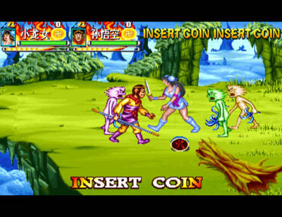 游戏刚开始,先按回车选中第一条选项,出现红色画面后,连按键盘上OK,2个字母两次 即可进入游戏。5投币,1开始。