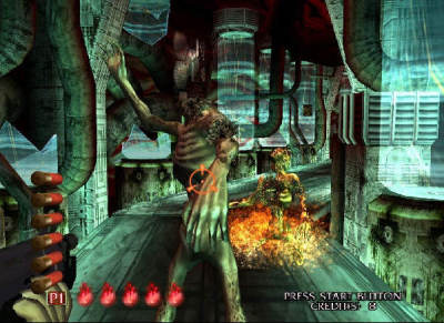 在主菜单里依次按方向键:左左右右左右左;可以在游戏进行中显示即时分数,达人用(街机的话就是扳机、扳机、上弹、上弹、扳机、上弹、扳机)。再有就是死亡之屋是街机,街机转版成PC版,是没有存档一说的,不论是1还是2还是3(4无PC版),退出可以用ESC键返回主菜单再选Exit,同时,Alt+F4也不错。