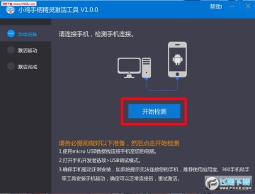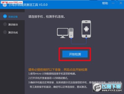 2、 打开电脑中的小鸡手柄精灵激活工具。点击开始检测,等待程序运行完毕。