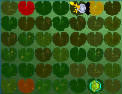 卡通感十足的2D游戏画面刻画的平滑细腻,以青蛙的家园池塘为背景,整体画面具有精美的展示。虽然游戏场景变化不大,但池塘,植物等相关物品具有莫测的组合,绿色的主色调也很养眼。配合明快的主题,动感活泼的背景音乐让人紧张又投入,以及各种生动的音效,整体音乐效果都保持了轻松诙谐的特色,会使玩家的游戏过程变的放松。