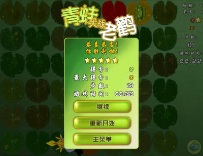 青蛙大战老鹳一款休闲游戏,玩法很简单,玩家控制青蛙,对手是一只老鹳(guàn ),它会学青蛙的步行方向,所以如何尽量的吃到蚊虫并到达终点,除了想办法思索自己的路线,也要考虑如何把老鹳带入陷阱。精致的游戏画面与声音,同时还有奖励型的音乐与视频。无限次重玩,不会经历两次同样的事件,随时给最新鲜的游戏体验。