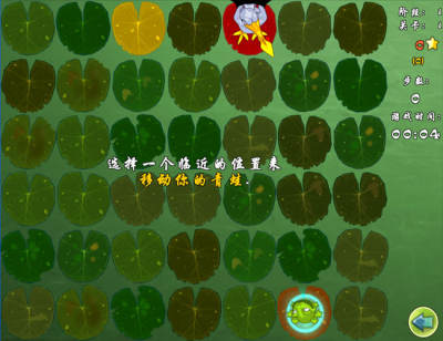 作为一款益智解密类游戏,本作中具备了循序渐进的难度提升,使玩家具有适应过程。玩法也相当简单,青蛙会随着你点击荷叶的方向前进,仙鹤会与你反相行动,前进至黄色荷叶处即可过关。