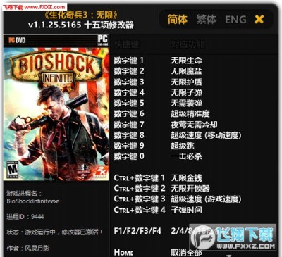 生化奇兵3:无限十五项修改器里面包含了生化奇兵3无限的15个非常实用的功能,这款修改器是风灵月影大神最新推出的一款修改器,这款游戏修改器是全中文版的,支持游戏的最新版,有需要的玩家请下载使用。
